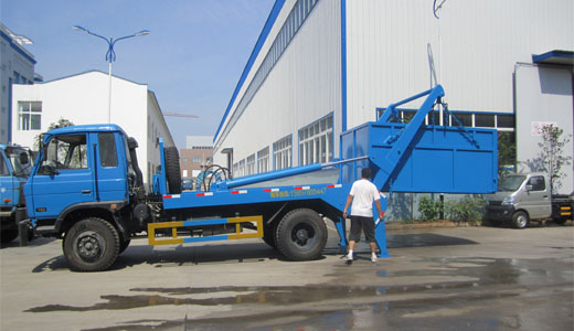 上圖為正在測試東風153擺臂式垃圾車(坑下方型斗)