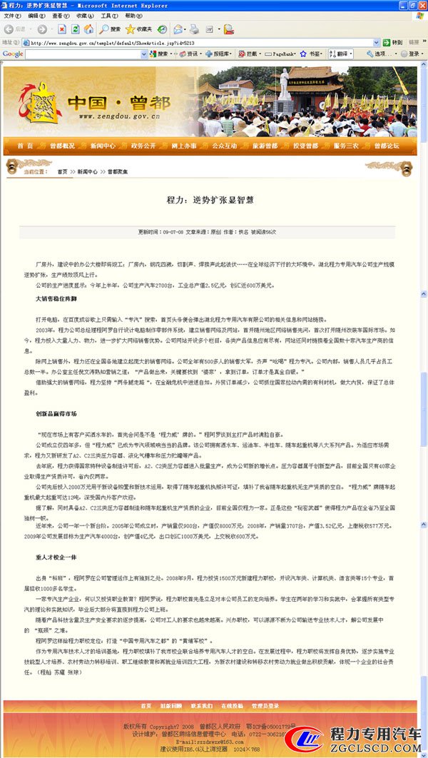 湖北程力專用汽車公司獲曾都政府網重點關注