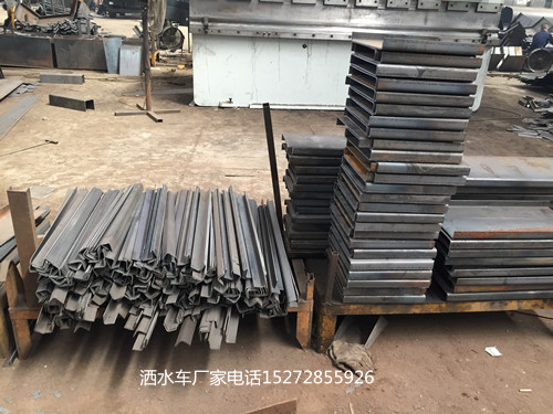 灑水車罐車內部的波浪板制作需要用的機器不同一些,首先同樣是通過等離子切割機裁剪出弧形板塊,然后是通過折彎機把弧形鋼板變成波浪的形狀。而波浪板中的人孔則是液壓機一次性沖壓成型的。至于波浪板、人孔的包邊和炮筒則需要用到剪板機。