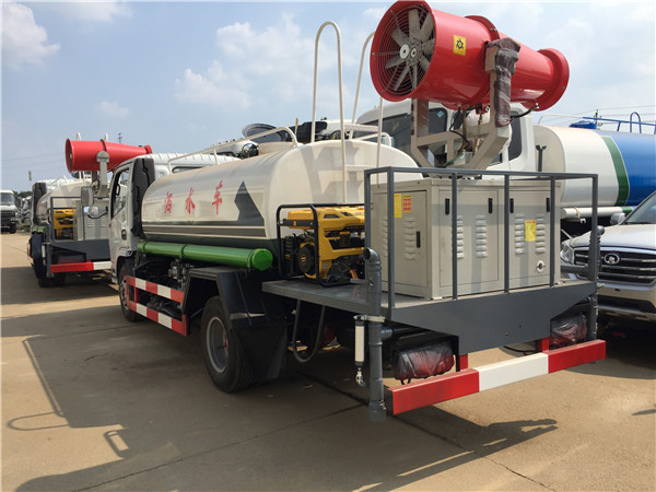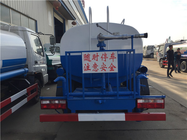 灑水車前裝有鴨嘴形噴嘴或圓頭沖嘴,后面裝有圓柱形灑水噴嘴或蓮蓬頭噴嘴,后部有一個(gè)工作平臺(tái),裝配有水炮。后部還可裝8個(gè)噴嘴(選裝)。