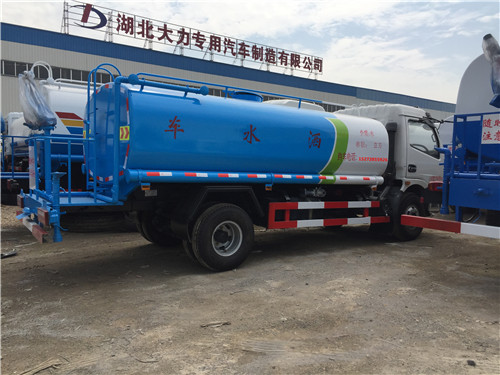 第八款不上牌9.5噸東風灑水車底盤采用東風大多利卡(十堰產),3800mm軸距,帶動轉,7.5尼龍胎,氣剎,電子熄火。前沖后灑,后工作平臺帶高炮,右位花灑,側噴。罐體9.2噸,金龍泵,前沖后灑,后工作平臺帶高炮,右位花灑,側噴。