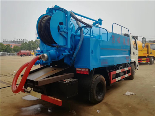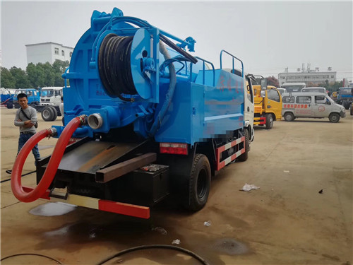 藍(lán)牌高壓清洗吸污車分為水罐和吸污罐,清水罐置入罐體兩側(cè),容積2.4方,通潔高壓清洗泵最大壓力24兆帕,170流量,采用全功率夾心取力器驅(qū)動,三通高壓分配閥內(nèi)芯為不銹鋼制作。配10個不同型號的高壓噴嘴,并印有編號和使用壓力,油泵和馬達,多路閽均采用知名品牌。吸污罐4立方,采用億豐真空泵,罐體尾部100自流口(可根據(jù)用戶要求安裝2個),6米吸污管,吸污罐與水廂活動接頭相連,可以用吸污罐裝水做單一的高壓清洗用。