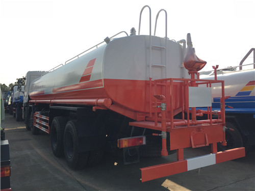 20方東風后雙橋灑水車,東風153寬體駕駛室,4350+1300mm軸距,國三康機ISB210發動機,八變速箱,前橋5.0T/后橋10.0T,車架250 (7+4)mm,10.00-20尼龍胎。配置60/90水泵,前沖后灑,帶后工作平臺,帶高炮,右位花灑,帶側噴。整車型號:DLQ5250TGYL5,,底盤型號:EQ1250GLJ,平頭一排半御龍駕駛室、康明斯ISB210 50發動機、小八檔變速箱、280×80×(7+4)mm大梁、5噸前橋、10噸雙后橋,軸距4350+1300mm、輪胎11.00輪胎 ,罐體容積24立方,6mm厚,單倉帶泵、含工具箱、含兩個自流出口,水壓封頭加1000元,選裝配置(另加價):一個海底閥加1000元,一個歐標罐口加1000元