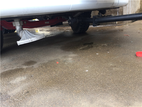 2、灑水車方向盤向右打死,到位后回一點(diǎn),避免損傷轉(zhuǎn)向系統(tǒng),下同。