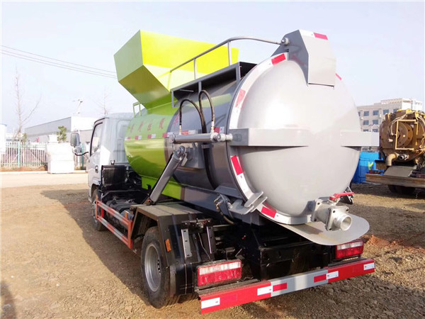 像密封餐廚垃圾車、掛桶餐廚垃圾車這樣的普通的垃圾車的作用只是收集垃圾,而壓縮餐廚垃圾車則不同,它在收集垃圾的同時還起到壓縮作用,將車廂內的垃圾進行壓縮處理,簡單高效且不會產生二次污染,能夠在很大程度上提高垃圾的收集效率。壓縮餐廚垃圾車具有壓縮性強,裝載量也相對較大,其可以用8噸的力來碾壓垃圾,而且這個碾壓過程完全可以讓司機一個人操作實現,不僅防止了垃圾對環境的污染,更減輕了環衛工人的工作負擔。同時還配備了自動控制油門與雙保險系統們可延長餐廚垃圾車的使用壽命。
