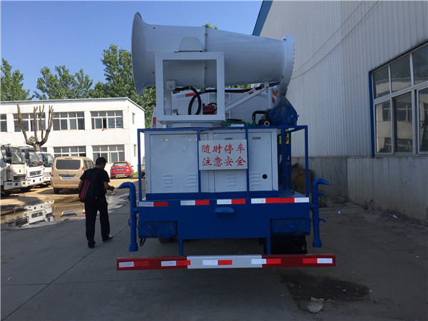 這款霧炮抑塵車配備了4缸柴油發電機組,噴灑效果可達40米。也屬于一款多功能抑塵車,在東風多利卡五噸灑水車的基礎上添加了霧炮噴灑功能,主要目的是降塵,和地面噴灑清洗。一車多用,既節省了購車成本,也達到了使用要求。