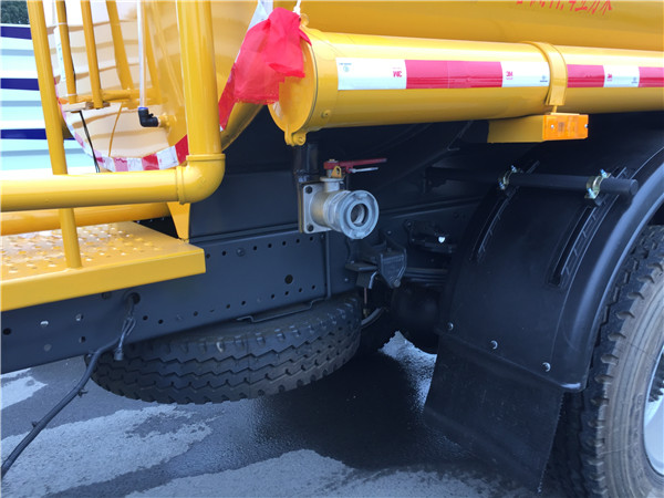 灑水車管路系統中最重要的組成部分就是水泵。泵內有葉輪。泵自身無散熱系統。主要靠罐體內的水進入泵流出泵來散熱。倘若泵內無水,任之空轉,會導致泵內高溫高壓而使軸承水封漏水,從而使泵內水套的水進入齒輪箱,造成齒輪箱內的機械齒輪損壞。灑水車在沒有開啟前噴或后灑時,盡量不要啟動水泵(不管泵內有無水,都不允許水泵的空轉)。在停止使用時,首先要踩下離合,然后關閉取力器氣動開關,停止泵的工作,然后熄火發動機。在水泵的后下方,有一個水龍頭開關,用戶在北方冬天氣溫降到零度時一定將其打開,將罐底的水徹底放干,防止殘留水在泵中結冰。