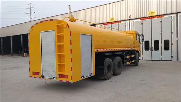 2、后噴灑:裝有兩支可噴淋后灑裝置,主要對(duì)路面進(jìn)行保潔和壓塵,呈扇面噴灑時(shí),灑水寬度可達(dá)10米以上。