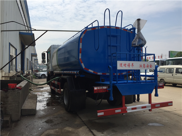 將灑水車(chē)開(kāi)到預(yù)定位置,使水罐口對(duì)準(zhǔn)自來(lái)管口打開(kāi)罐口蓋、自來(lái)水即可加水。