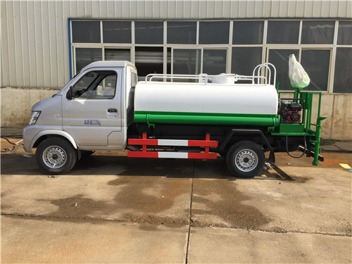 上裝配置:采用CH1035AQ24底盤改裝,水箱容積2立方,前沖后灑,側噴,罐體后帶工作平臺,平臺上安裝綠化灑水炮,灑水炮可全方位旋轉,可連續調成直沖狀、大雨、小雨、毛毛雨,帶安全護欄,罐體材質采用Q235碳鋼優質鋼板制作,罐體后部安裝汽油抽水泵,由抽水泵提供動力,泵可自吸自排,安裝過濾網。整車價格在5萬元。