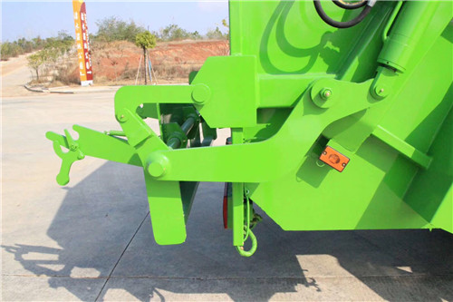 箱體由框型骨架,導軌,弧形料斗,刮板,滑板,負壓板和輕型覆蓋件組成。通過刮板油缸,滑板油缸,負壓板油缸的順序動作,實現將垃圾循環壓入箱體?;鍍蓚妊b有4個滑塊,摩擦系數低,強度高,且能作微量擺動,以保證導軌長期使用而不受磨損。后部通過舉升,翻板油缸來實現垃圾的回收,鐵桶或塑料桶在翻轉過程中被系統鎖緊,安全平穩力度大,結構合理。