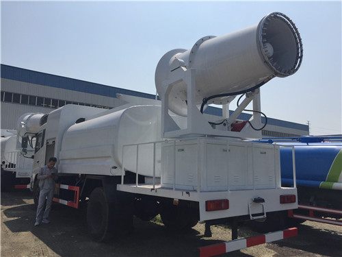 一臺“霧炮”灑水車可噴灑100多米。“霧炮”又叫環(huán)保除塵風(fēng)送式噴霧機,安裝在車的后半部分?!办F炮”的原理是在液泵噴水后,利用風(fēng)機將水噴灑出去,能噴灑120米遠(yuǎn)、90米高。向天空噴灑水霧,達(dá)到抑制揚塵、綠化除塵等效果。
