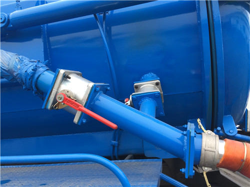 吸糞車在排放流動性較差的淤泥時,先打開自流口,讓罐內淤泥在自重的壓力下,自然排出。因為淤泥的流動性比較差,所以自然排放速度會比較慢。如果比較趕時間的話,可以通過給罐內增壓的方式來加快排放速度。
