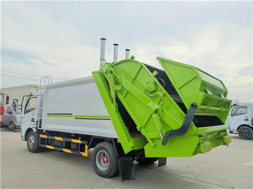 壓縮垃圾車容積為:4-6立方米,可裝生活垃圾車3.4-5噸,廂體可選用碳鋼或錳板材質制作,液壓控制系統可選用國產配件或進口配件,駕駛室內外雙操作系統,PLC智能一鍵循環控制系統。
