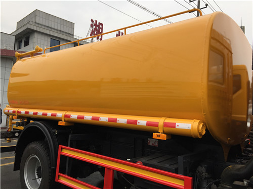 福田灑水車(chē)前裝有鴨嘴形噴嘴或圓頭沖嘴,后面裝有圓柱形灑水噴嘴或蓮蓬頭噴嘴,后部有一工作平臺(tái),裝配有水炮。后部還可裝8個(gè)噴嘴。