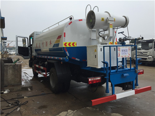 國六東風多利卡D9灑水車整車型號:CLW5162GSS4型灑水車,底盤型號:DFA1160LJ10D4,整車外形尺寸:8100,7450×2480×3000 ,罐體尺寸:5000/2100/1350mm、4350/2300/1400mm、這款國六東風多利卡D9灑水車罐體容積:12方,11.9方,不同軸距,立方數不一樣,罐體采用國標碳鋼鋼材制作,帶前噴后灑,側噴,尾部帶平臺及高炮,可以自吸自排,國六東風多利卡D9灑水車外形圖片展示如下: