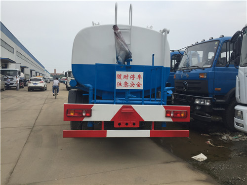 灑水車管路系統中最重要的組成部分就是水泵。泵內有葉輪。泵自身無散熱系統。主要靠罐體內的水進入泵流出泵來散熱。倘若泵內無水,任之空轉,會導致泵內高溫高壓而使軸承水封漏水,從而使泵內水套的水進入齒輪箱,造成齒輪箱內的機械齒輪損壞。灑水車在沒有開啟前噴或后灑時,盡量不要啟動水泵(不管泵內有無水,都不允許水泵的空轉)。在停止使用時,首先要踩下離合,然后關閉取力器氣動開關,停止泵的工作,然后熄火發動機。在水泵的后下方,有一個水龍頭開關,用戶在北方冬天氣溫降到零度時一定將其打開,將罐底的水徹底放干,防止殘留水在泵中結冰。