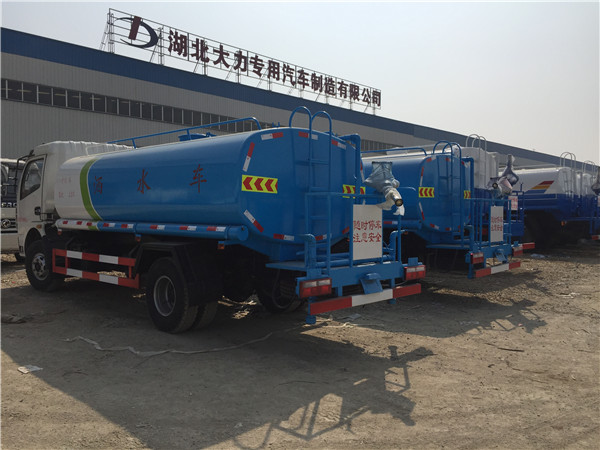 這臺灑水車的參數是,5噸東風多利卡國五灑水車,整車型號:CLW5071GSSEQ5,(EQ5070GPS3BDFAC)底盤采用東風多利卡,3308mm軸距,7.00鋼絲胎,ABS,全柴115馬力,萬里揚5檔變速箱,帶動轉,汽剎,有免證,嚴格按公告尺寸生產。前沖后灑,后工作平臺帶高炮,右位花灑,側噴。