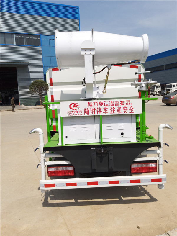上裝配置:罐體容積:4.5立方(裝水4.5噸),罐體鋼板采用Q235碳鋼鋼材,前沖后灑、側噴、平臺高炮、自流閥及消防接頭各1個、水管2根、標配億豐泵或金龍泵,霧炮機可選裝20-35米,