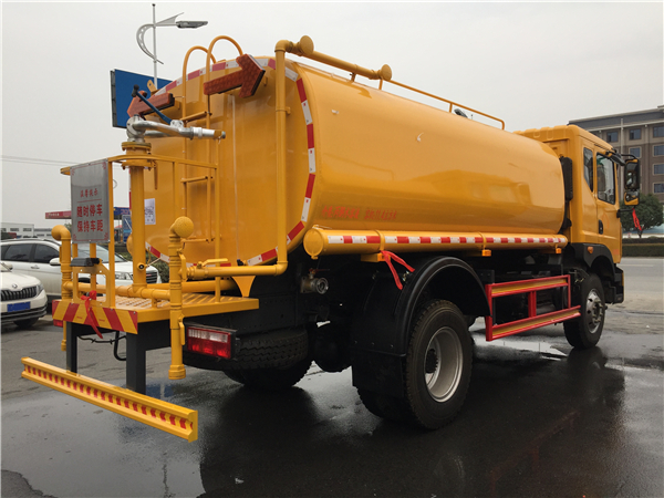 以上情況僅適合于正常使用雙向前沖噴頭的環衛灑水車,如果只是用于壓塵降溫而使用后灑和側噴,其流量則相應減少,噴灑距離會更長。有些用戶希望灑水車流量越大越好,這是比較片面的想法。灑水車流量大,則灑水距離變短,加水次數增多,經濟性欠佳;從路面沖洗來說,水流過大,容易造成低洼處積水,灰塵較多的地方容易形成泥濘帶,干燥后出現塵土飛揚的現象。