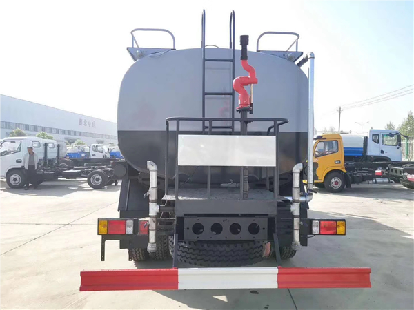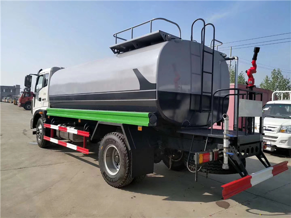 灑水車后部安裝有工作平臺,帶安全護欄,平臺上安裝綠化灑水炮,灑水炮可360°全方位旋轉,可上下120°調節噴頭的仰角??蛇B續調成直沖狀、大雨、小雨、毛毛雨,灑水炮射程大于35米,緊急時可用于消防。
