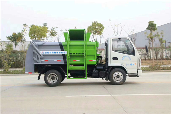 上裝配置:雙缸液壓,加強加固勾臂,駕駛室操控,配3方勾臂箱一個,兩側開垃圾投遞窗口,氣動撐桿支撐,尾部手動開啟,箱體帶滾輪。