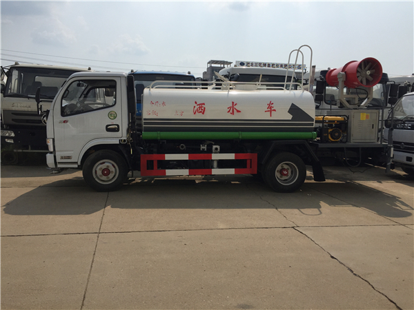 比如說同樣一臺12方的抑塵車如果是市政環衛使用他可能就需要標準配置前沖丶后灑丶側噴丶高炮。給街道灑水降塵降溫,給綠化帶澆水。工地或者拆遷使用他可能會加裝霧炮噴灑裝置給工地抑塵避免揚塵。園林綠化果園使用他會選擇加裝農藥噴灑裝置給果樹噴灑農藥。有的需要給洗浴中心運送熱水他會選擇多加裝熱水泵。還有運輸飲用水他的罐體和管道材質可能會選用不銹鋼材質。抑塵車的品牌也是多樣化的有東風老款145,東風D9,東風T3,東風天錦,解放,大運,福田等多種品牌。不同的選擇價格肯定不同。