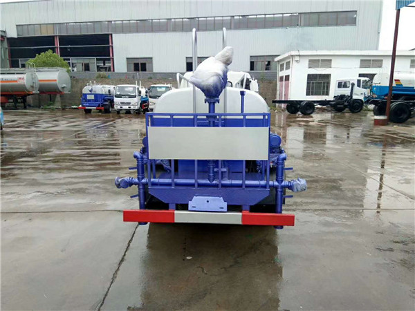 罐體采用4毫米厚武鋼產容積板焊接而成,內設防浪板,程力大功率灑水泵,可自吸水,加壓排水,前沖15米寬,后灑壓塵,側噴花灑噴頭,尾高綠化高位水炮,射程28米,可調節水柱、大中雨、毛毛雨等,可做臨時消防滅火用。