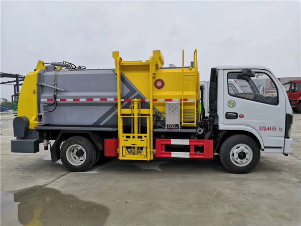 餐廚垃圾車由密封式垃圾廂、液壓系統、操作系統組成。整車為全密封型,自行壓縮、自行傾倒、壓縮過程中的污水全部進入污水廂,較為徹底的解決了垃圾運輸過程中的二次污染的問題,避免了給人們帶來不便,關鍵部件采用進口部件,具有壓力大、密封性好、操作方便、安全等優點。可選配后掛桶翻轉機構或垃圾斗翻轉機構。