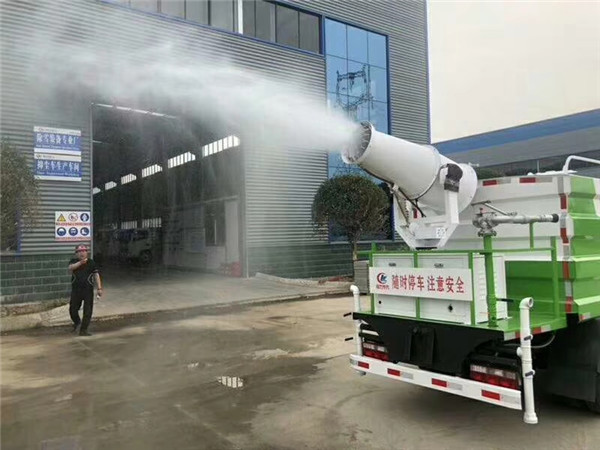 東風12噸抑塵車選配50米噴霧機達到除塵效果。霧炮機是根據風送原理,先使用進口高壓泵、微細霧化噴嘴將水霧化,再利用風機風量和風壓將霧化后的水霧送到較遠距離,使得水霧到達較遠距離同時能夠覆蓋更大面積,水霧與粉塵凝結后降落,從而達到降塵目的。