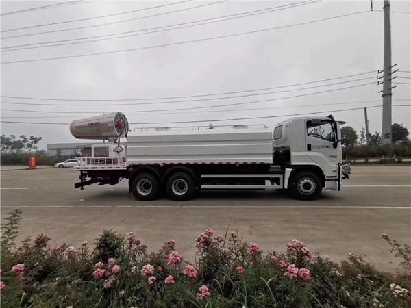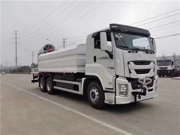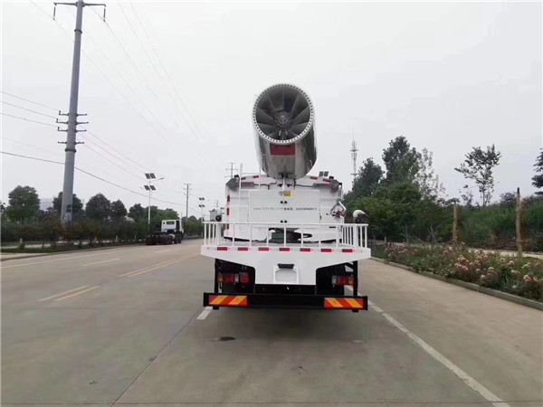 2.抑塵車功轉換效率高、射程遠、覆蓋面積大、霧粒細小且均勻、抑塵效果好。水霧與飄在空中的塵埃接觸時,被塵埃所吸附,加大塵埃的比重,抑制塵埃在空氣中的流動,并加速塵埃沉降,實現對空氣的凈化。
