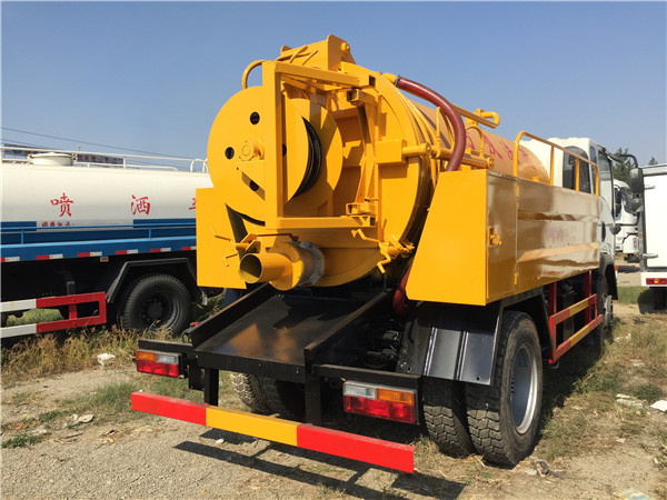 上裝配置:罐體采用優質Q235武鋼5mm碳鋼制作,罐體采用一次壓鑄成型,封頭6mm,吸污罐體容積4方,水罐2方,帶視污窗,安裝有防溢閥,億豐真空泵或SK-6水環式真空泵,帶6米內鋼絲防變形吸污管,配100mm排污球閥,罐體帶液壓舉升系統,后蓋液壓打開、關閉。罐體內有隔襯板,防止吸污罐變形。