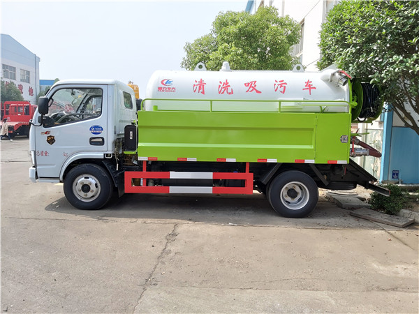 該車采用國六東風凱普特型EQ1041SJ3BDF底盤,平頭可翻轉駕駛室,3308軸距,五檔變速箱,玉柴115馬力發動機,7.00R16鋼絲輪胎(備用輪胎一條),方向助力,罐體采用優質武鋼板材6mm制成,吸污容積4立方,配5噸吸污車專用吸污泵,罐體帶液壓舉升裝置,后封頭可液壓打開,帶自流口,防溢閥,帶洗手裝置,視污窗口,兩邊水箱容積1.5立方可互通,高壓清洗泵選用德國進口,隨車配備一根8米吸污軟管及60米清洗管,其余按廠家標配生產.該車具有免征公告(可免交車輛購置稅)注:可上藍牌。