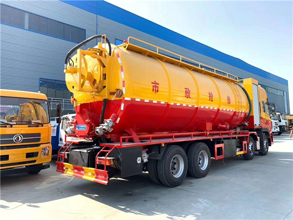 東風(fēng)天龍高壓清洗吸污兩用車∶該車在高度真空狀態(tài)下進行吸泥、污水吸入作業(yè)。該車是由汽車底盤、取力器、傳動軸、真空吸污泵、壓力罐體、液壓部分、系統(tǒng)、真空壓力表、視糞窗、吸收裝置等組成。隨車合理搭配置國產(chǎn)、進口優(yōu)質(zhì)的柱塞高壓泵,通過高壓水流產(chǎn)生的強大壓力沖開被堵塞的管道。主要組成部分為罐體、高壓泵、液壓系統(tǒng)等。高壓清洗吸污兩用車適用于大、中、小城鎮(zhèn)換位、市政、農(nóng)業(yè)、化工、廠礦企業(yè)、物業(yè)小區(qū)等部門的清洗疏通下水道和各種管道的沉積物,同時可進行下水道中污泥清撈、裝運、傾斜工作同時具有運水、排水應(yīng)急消防等功能。