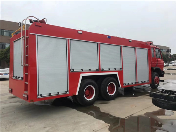 是我廠采用東風原裝二類底盤DFA11070DJ35D6基礎上改裝而成,東風輕發D28D10-40DA東風國六發動機,動力強勁,輸出功率75KW,102馬力,整車結構緊湊;專用部分由液罐、泵室、器材箱、動力輸出及傳動系統、管路系統、電氣系統等組成;罐體容積2-3噸(方);正規消防隊使用,PS10/20消防泵,最大射程45米;罐體采用4CM厚優質碳鋼Q235材質,防銹處理;廂體兩側帶卷簾門器材箱,可存放標配23套消防器材。