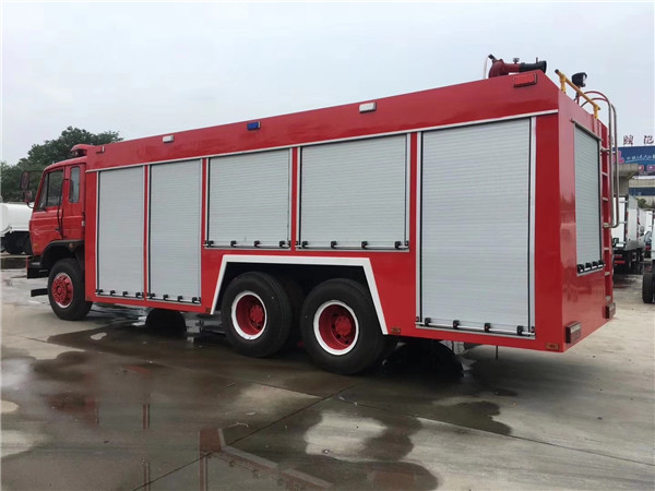 是我廠采用東風原裝二類底盤EQ1160GKJ1基礎上改裝而成,東風朝陽ISB190 40東風國六發動機,動力強勁,輸出功率140KW,190馬力,整車結構緊湊;專用部分由液罐、泵室、器材箱、動力輸出及傳動系統、管路系統、電氣系統等組成;罐體容積5-8噸(方);正規消防隊使用,PS10/40消防泵,最大射程60米;罐體采用4CM厚優質碳鋼Q235材質,防銹處理;廂體兩側帶卷簾門器材箱,可存放標配23套消防器材。