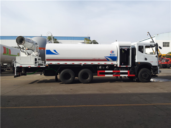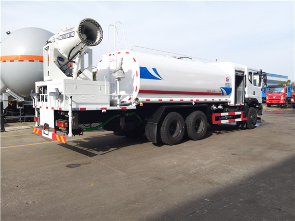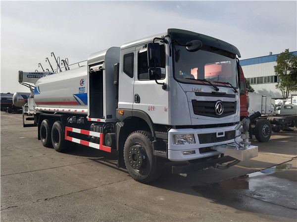 6、東風灑水車采用氣動裝置,可在駕駛室內控制出水。具有前沖、后灑、側噴、后工作平臺,高壓綠化水炮。