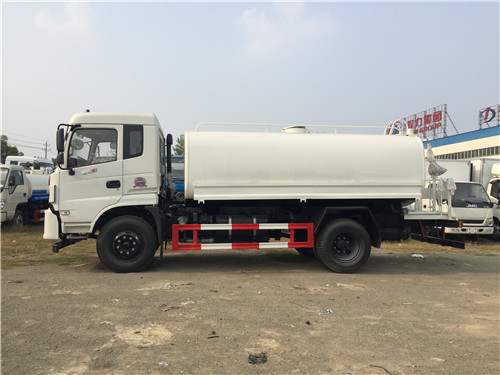 12方東風御虎灑水車整車型號: DLQ5168GSSL5,底盤型號EQ1168GLJ4, 東風御虎D913駕駛室,3950mm軸距,正宗國五康機ISB170 50發動機,六檔變速箱,配龍晟或金龍泵,9.00鋼絲胎,帶原裝ABS。前沖后灑,后工作平臺帶高炮,右位花灑,側噴。
