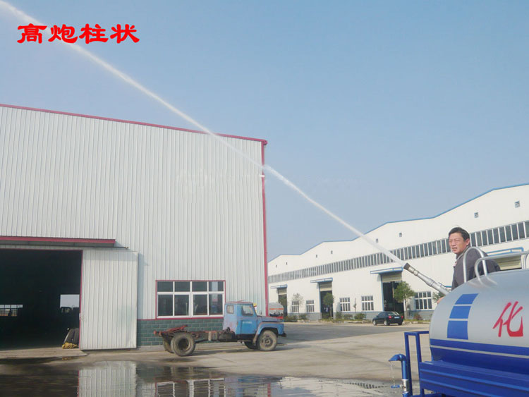 ◆ 灑水車綠化炮功能:綠化高炮位于灑水車的后工作平臺,可360度全方位旋轉,并可調節多種直沖狀、大雨、小雨、毛毛雨、霧狀噴灑、噴射方式--(柱狀射程≥28m;霧狀射程≥15m)。綠化炮霧狀噴灑可用于園林綠化噴灑作業;綠化高炮噴射一般用于沖洗澆灌樹木;綠化炮沖洗一般用于護欄沖洗、高空建筑物沖洗等.