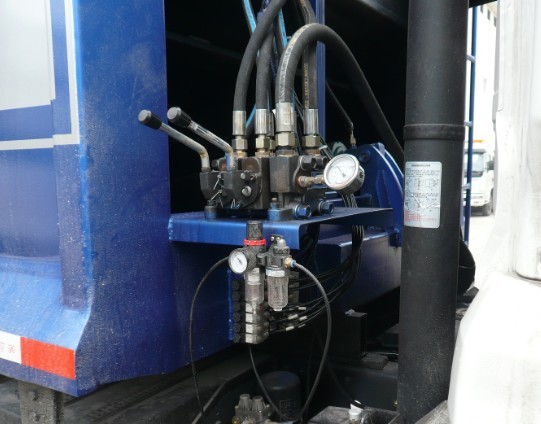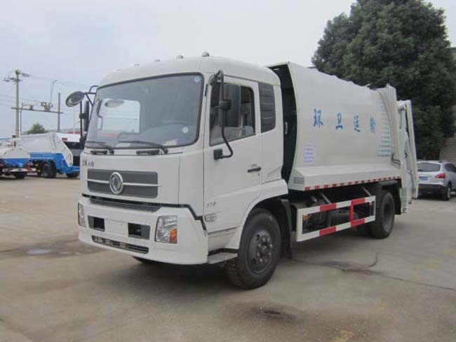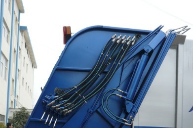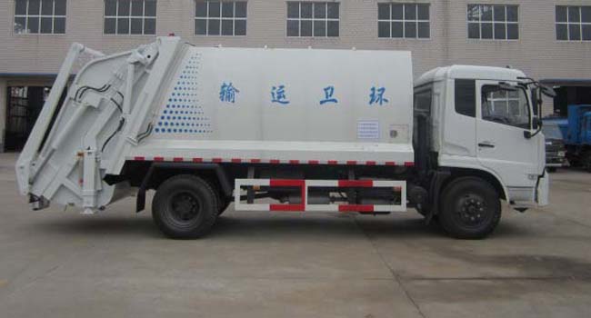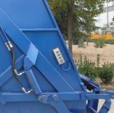 壓縮機(jī)構(gòu)(主壓板,副壓板,刮板,推板等),掛筒機(jī)構(gòu)等。主體結(jié)構(gòu)簡(jiǎn)圖如下: 其工作原理為:人工將垃圾裝入料槽中啟動(dòng)刮板機(jī)構(gòu)將垃圾從料槽中刮升至于箱體水平位置,再通過(guò)副推板將垃圾推向箱體車(chē)頭的位置。當(dāng)垃圾裝至3立方左右時(shí)啟動(dòng)副壓板機(jī)構(gòu)將箱體內(nèi)的壓力進(jìn)行壓實(shí)處理。同時(shí)主推板也相應(yīng)的配合使用在將垃圾壓實(shí)的過(guò)程中使得垃圾內(nèi)的廢液通過(guò)箱體內(nèi)的導(dǎo)流槽流入料槽中,再通過(guò)料槽左右兩端的出液口將廢液排除。在卸料過(guò)程中,首先將副推板整體整體提升至卸料狀態(tài),再啟動(dòng)主推板將壓縮后的垃圾從箱體內(nèi)推出,從而完成一整套裝卸過(guò)程。湖北程力專用汽車(chē)有限公司所生產(chǎn)的掛架式垃圾車(chē),其中的掛架機(jī)構(gòu)主要是為了節(jié)省人工成本降低生活垃圾隊(duì)環(huán)衛(wèi)工人的身體危害。該掛架機(jī)構(gòu)可懸掛220升及600升兩種城市通用移動(dòng)式塑料垃圾收集筒。整體效果圖如下: