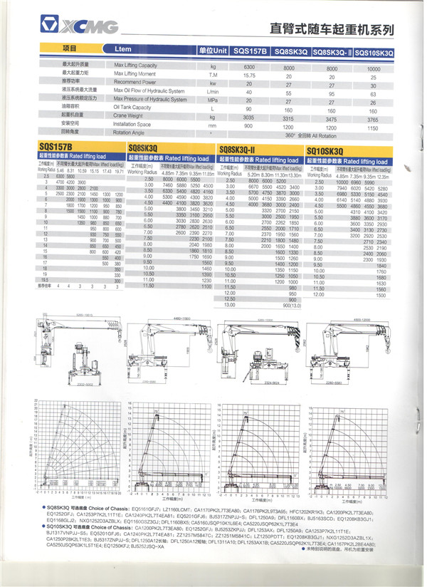 噸位是首先關注的重點。一般來說,藍牌隨車吊可以拉8噸以下的機械。黃牌中8米左右的車型可以拉到12噸,9米的車型可以承載15噸,后八輪可以承載20噸,前四后八可以承載25噸。所以根據自己所需要的噸位,確定車型是第一步。