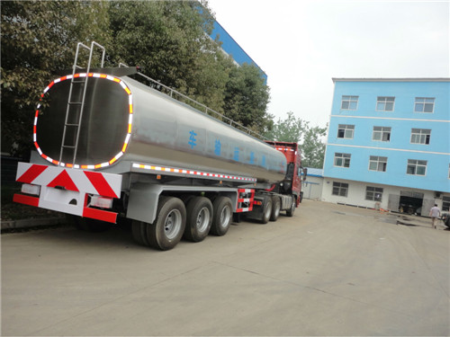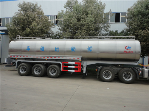 2、鮮奶運(yùn)輸車罐體容積45立方,分5倉(cāng),罐體外部需作保溫層防止鮮奶變質(zhì),罐體內(nèi)部用特種設(shè)備拋光,可充分保證鮮奶不掛壁,內(nèi)部要求光潔、無(wú)銳角,在每個(gè)奶艙內(nèi)加上cip(清洗裝置)。 鮮奶運(yùn)輸車罐體整體分三層,罐體內(nèi)膽,材質(zhì)為304/2B食品級(jí)不銹鋼,板厚度5mm,中間部分為聚氨酯發(fā)泡保溫層,厚度為80mm,人孔部分聚氨酯發(fā)泡為60mm厚。保溫效果在24小時(shí)±1℃。罐體最外部為1mm厚304不銹鋼鏡面板,。 內(nèi)膽部分有清洗裝置,清洗桿(或清洗球);清洗管(Φ38mm),旋轉(zhuǎn)清洗噴頭. 外部接上水源即可自動(dòng)清洗罐體,造 型美觀,結(jié)構(gòu)科學(xué),自重輕,強(qiáng)度好,罐口采用特制雙層保溫不銹鋼罐口5個(gè),5個(gè)2.5寸不銹鋼自流口卸料.