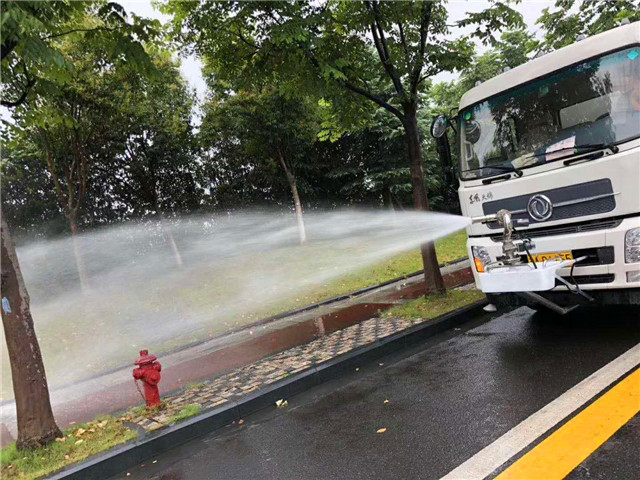 現(xiàn)在灑水車(chē)流行配備全自動(dòng)灑水炮(自動(dòng)旋轉(zhuǎn)噴頭),一人即可在駕駛室內(nèi)完成噴灑作業(yè),與傳統(tǒng)灑水噴槍?zhuān)ㄅ冢┫啾龋悄苄D(zhuǎn)噴頭具有以下特點(diǎn):